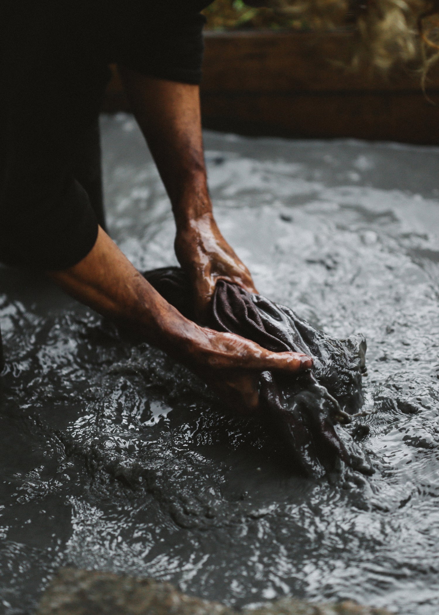奄美大島の染色技法「泥染め」を施したコレクション。経年変化とともに風合いが増していき、泥染めならでは深い色合いに育っていきます。