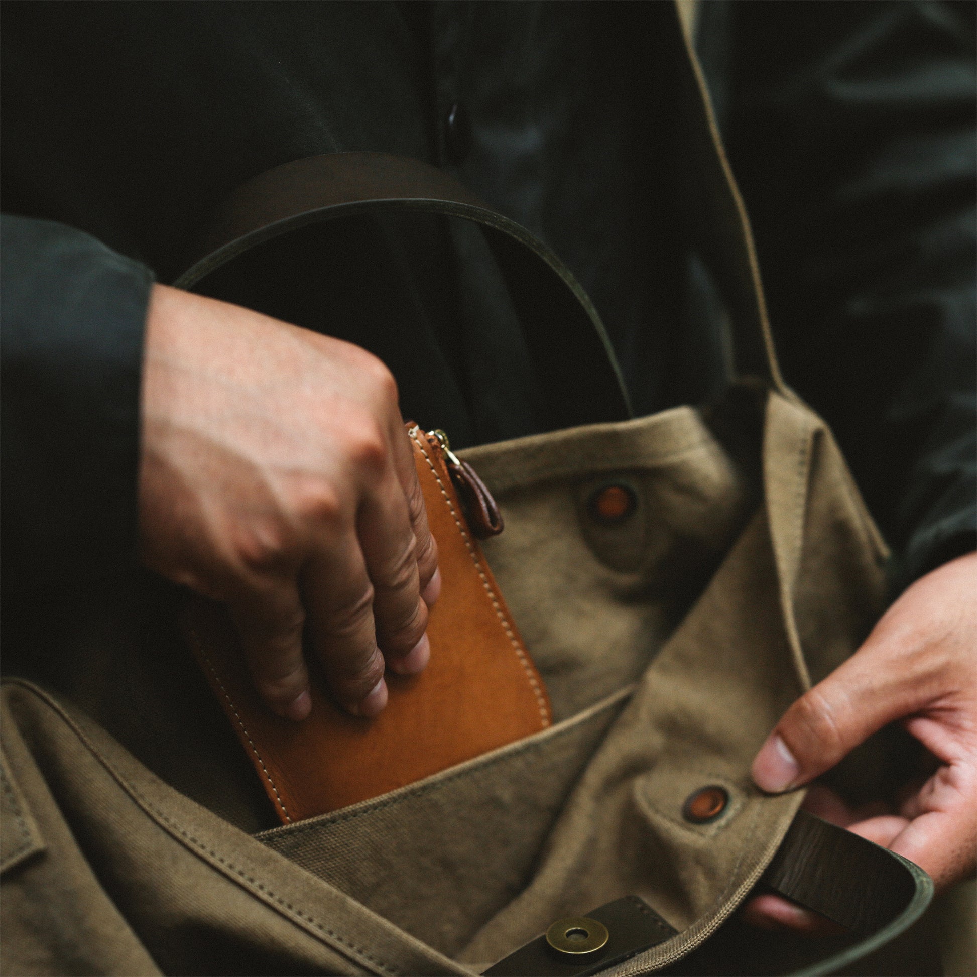Natural Dye Col. / 15.2oz Heavy weight / Leather Handle Tote