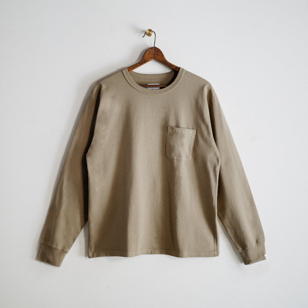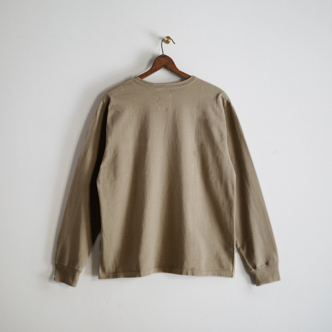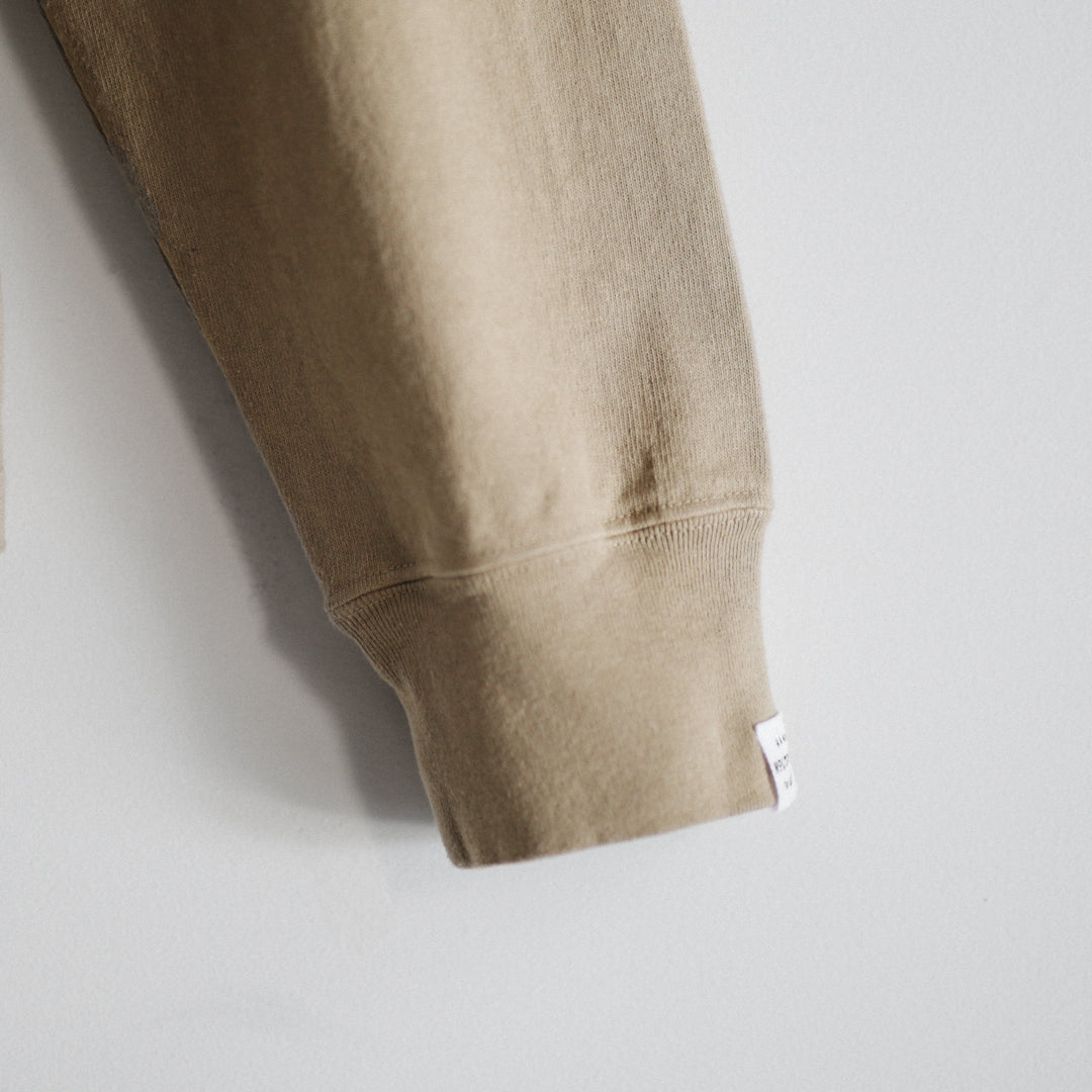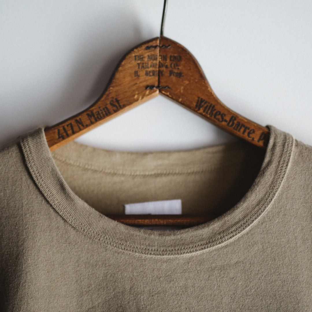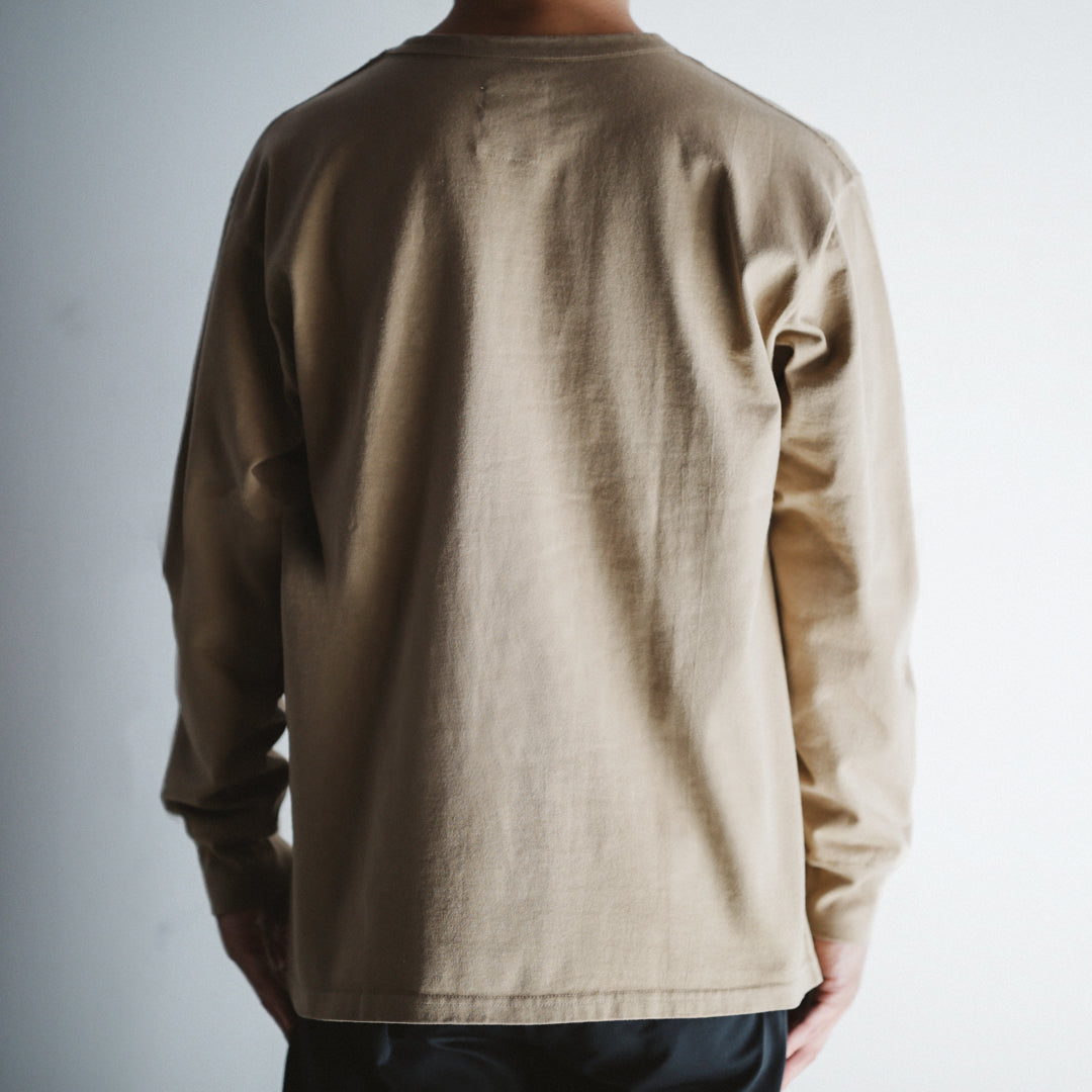 「Wakayama Azuma knit Long Sleeve」の染色の舞台となったのは、”京都府”。着込むほどに風合いが増していき、愛着の持てるTシャツに仕上げたいという思いがありました。それを実現させるためのポイントとなるのは、生地もさることながら染色も重要です。様々な染色手法がある中、採用に至ったのは「Garment Dye / 製品染め」。製品が仕上がってから染める方法です。製品になってから染めるということは、縫い目も生地も同じ色に染色されるということ。それにより縫い目が生地に馴染み、先染め製品にはない独特の風合いが生まれます。そして着込むほどに絶妙なアタリや色ムラが生まれ、着用した人の痕跡が反映されパーソナルな一着に仕上がります。それこそが今回「Garment Dye / 製品染め」を採用した目的です。