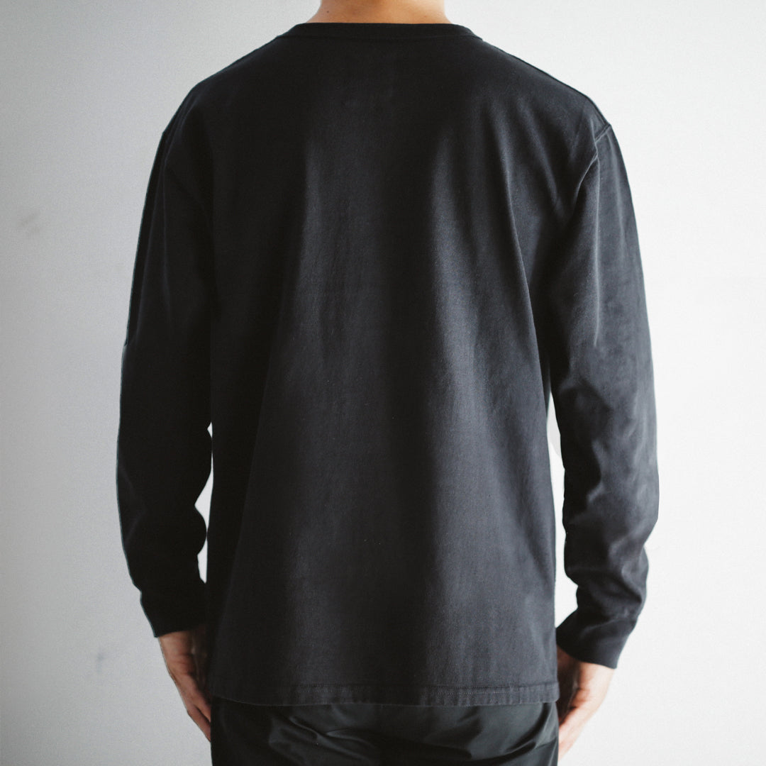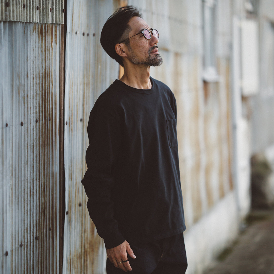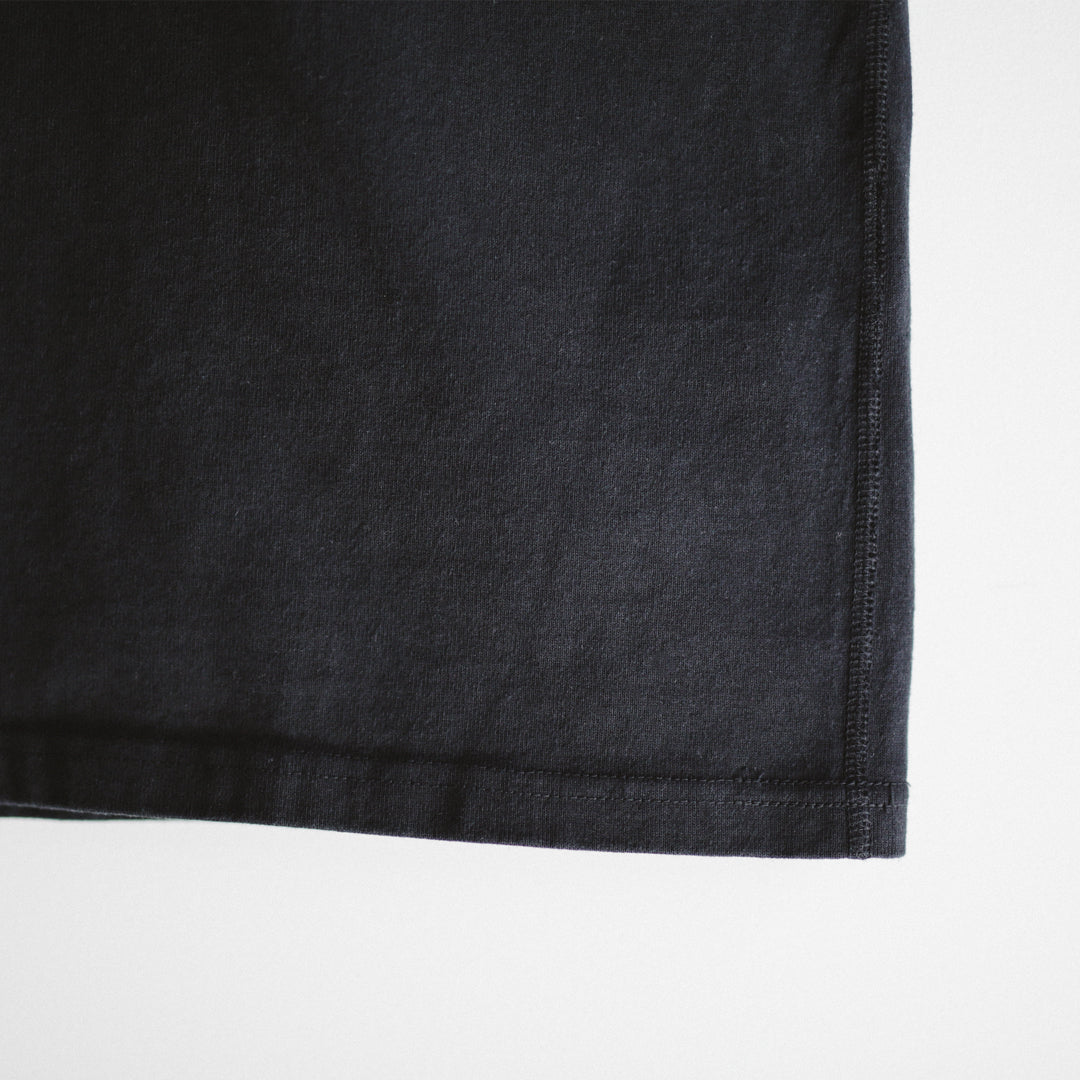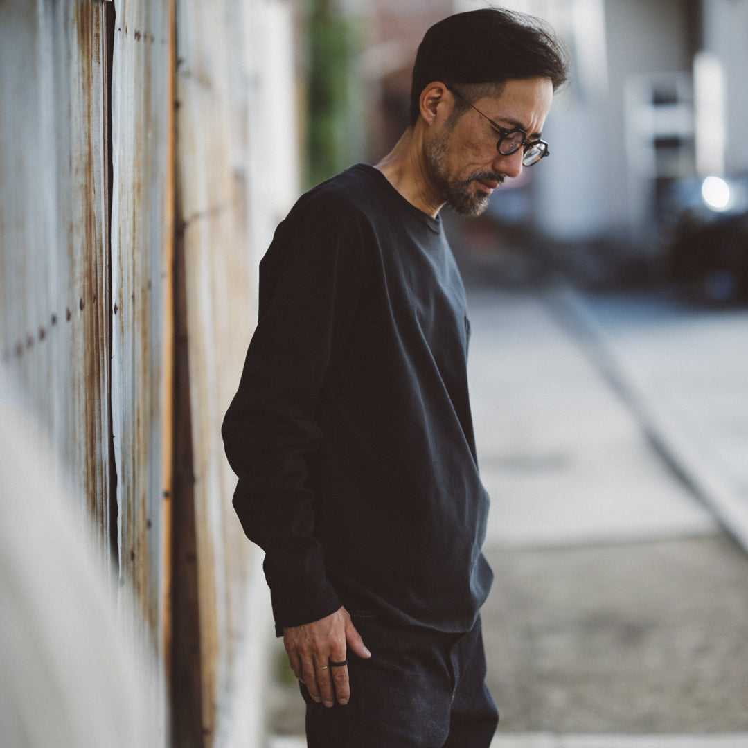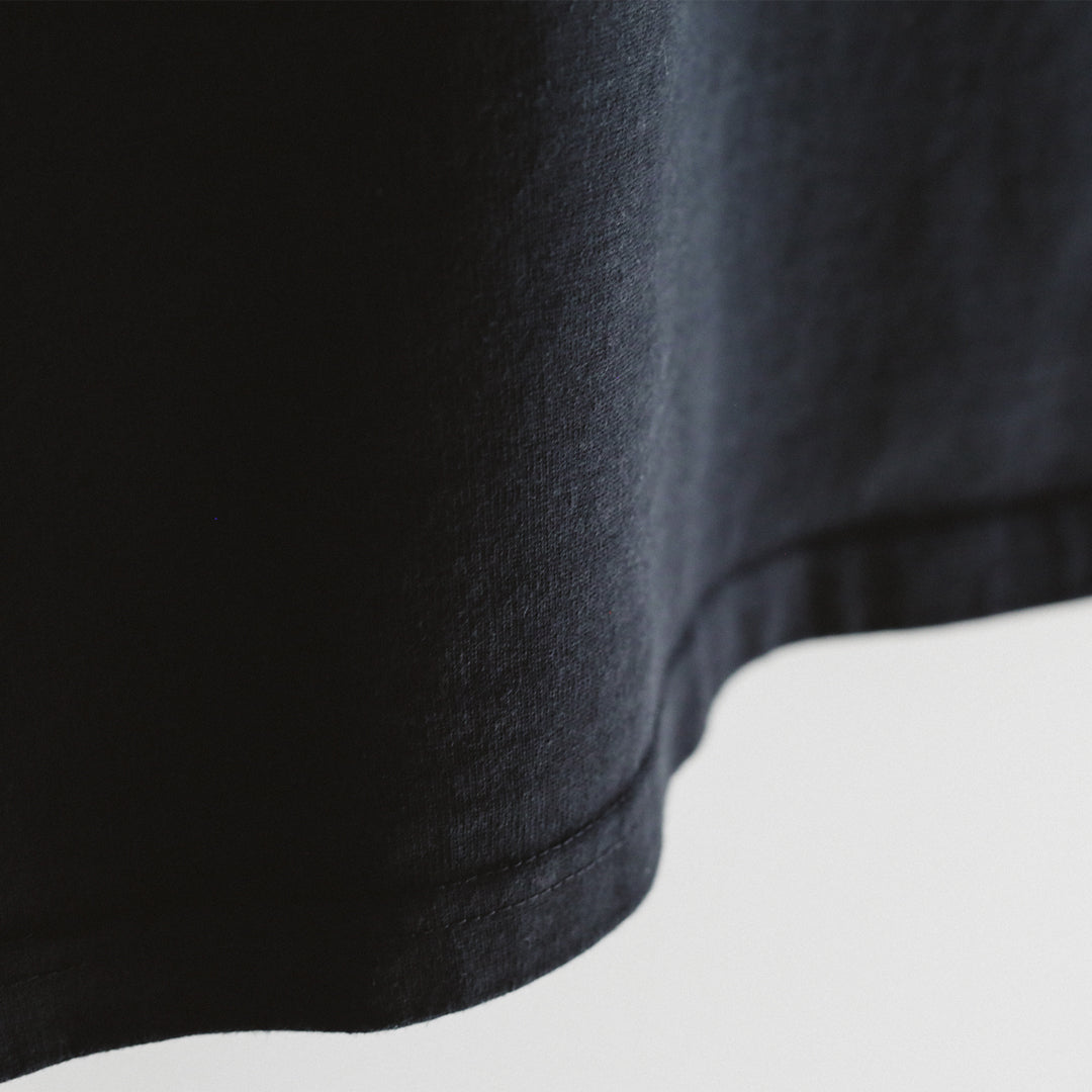「Wakayama Azuma knit Long Sleeve」の染色の舞台となったのは、”京都府”。着込むほどに風合いが増していき、愛着の持てるTシャツに仕上げたいという思いがありました。それを実現させるためのポイントとなるのは、生地もさることながら染色も重要です。様々な染色手法がある中、採用に至ったのは「Garment Dye / 製品染め」。製品が仕上がってから染める方法です。製品になってから染めるということは、縫い目も生地も同じ色に染色されるということ。それにより縫い目が生地に馴染み、先染め製品にはない独特の風合いが生まれます。そして着込むほどに絶妙なアタリや色ムラが生まれ、着用した人の痕跡が反映されパーソナルな一着に仕上がります。それこそが今回「Garment Dye / 製品染め」を採用した目的です。