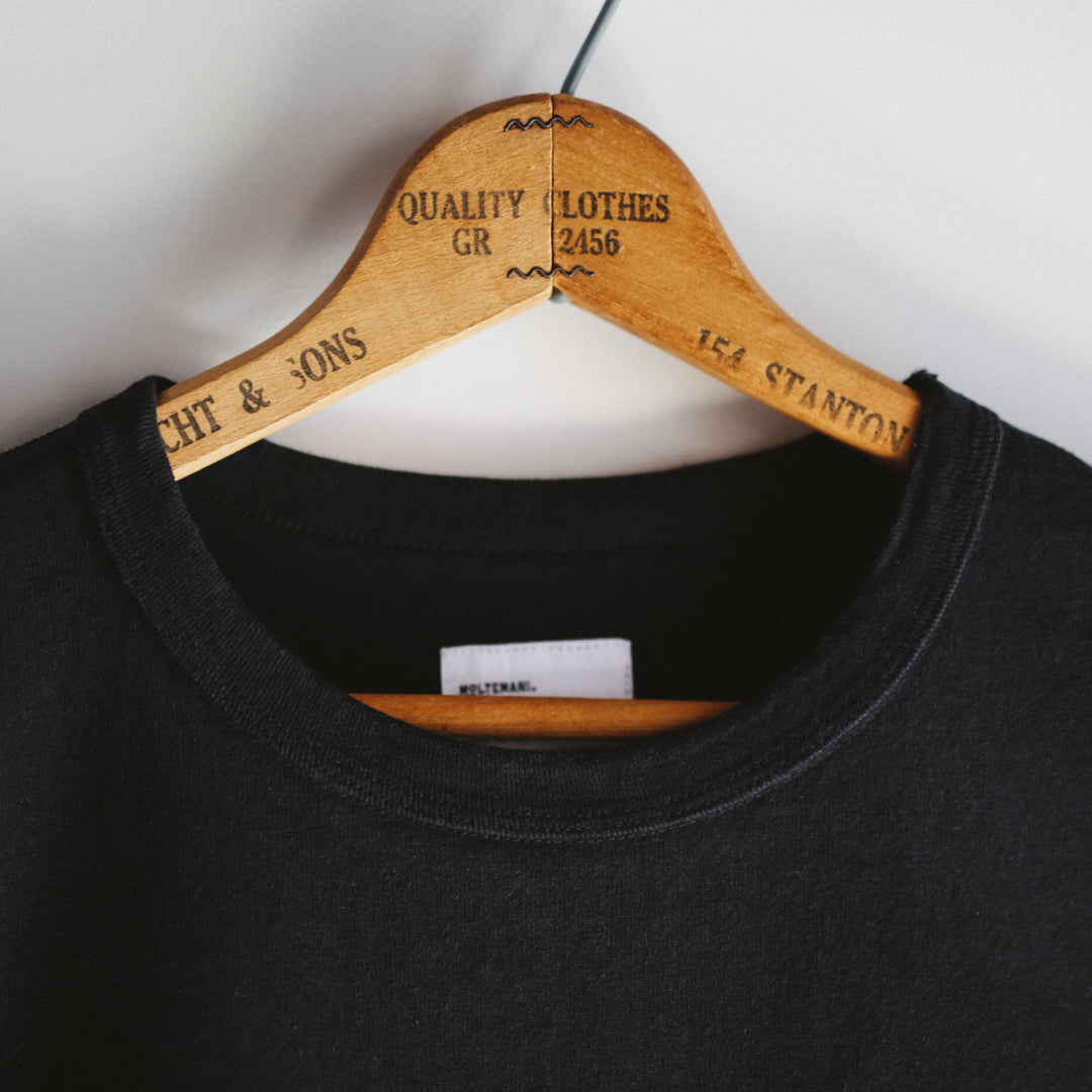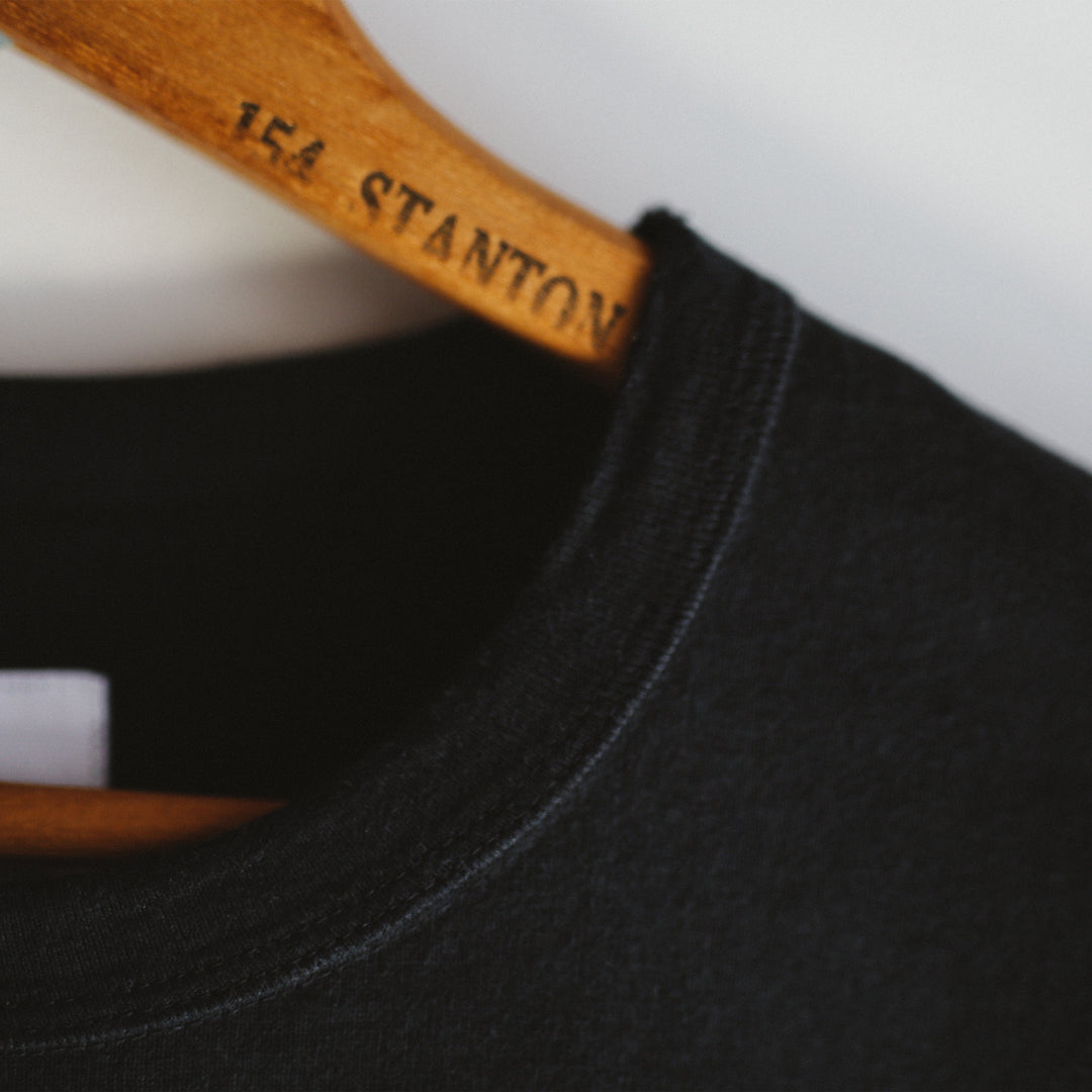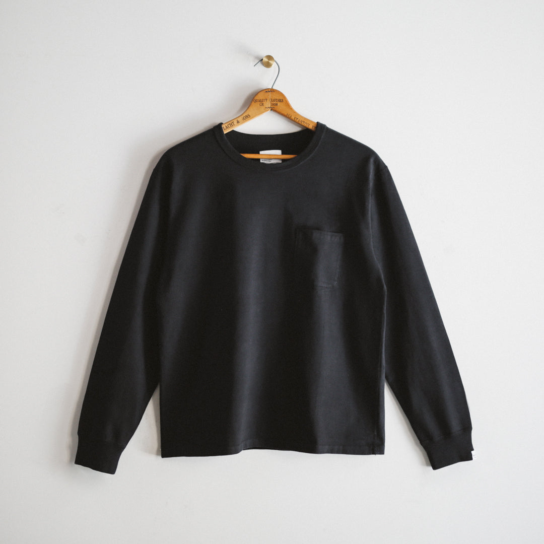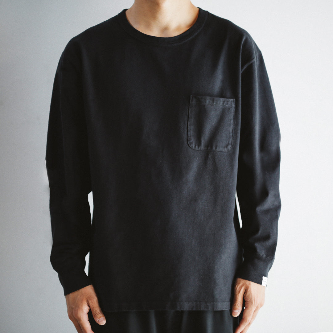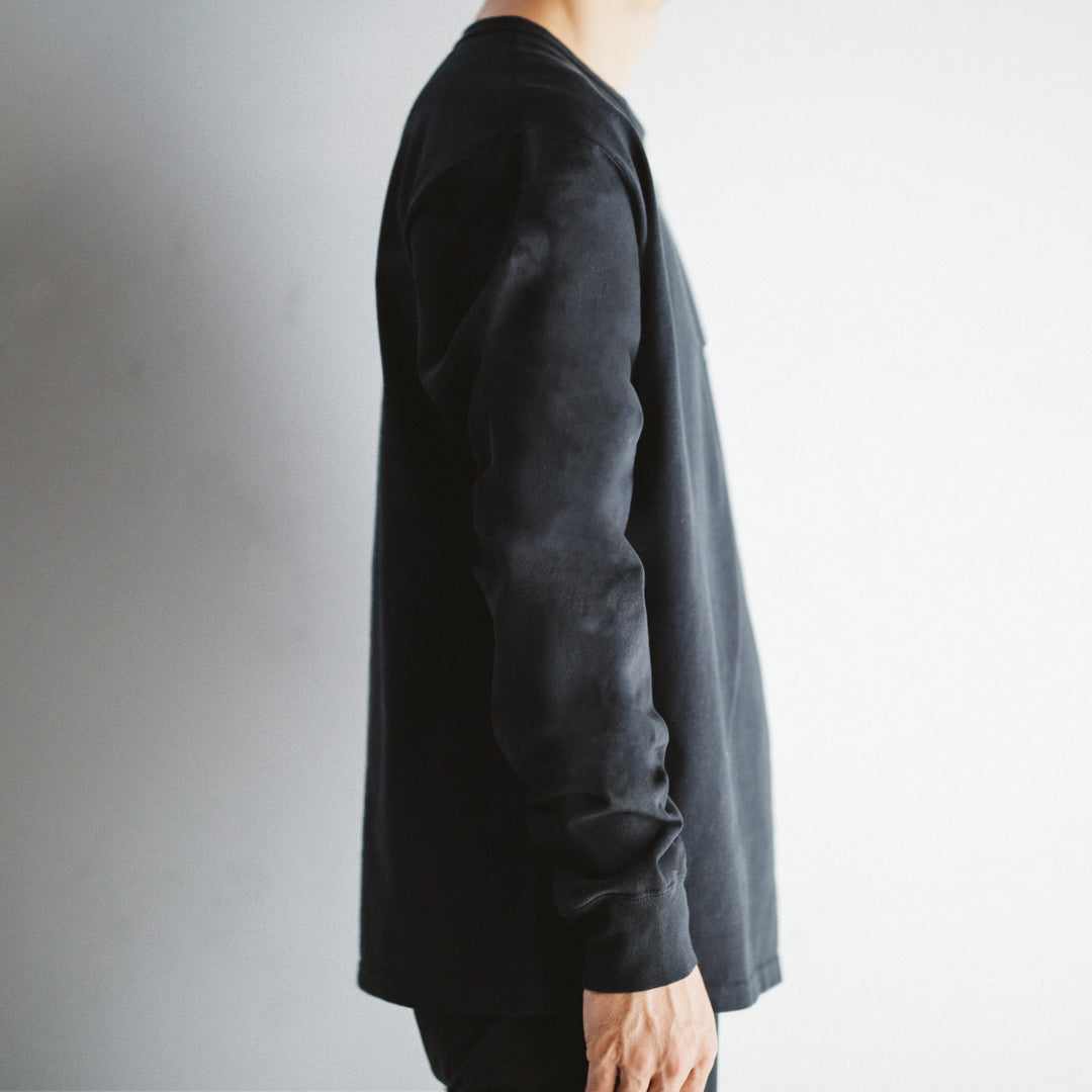 「Wakayama Azuma knit Long Sleeve」の染色の舞台となったのは、”京都府”。着込むほどに風合いが増していき、愛着の持てるTシャツに仕上げたいという思いがありました。それを実現させるためのポイントとなるのは、生地もさることながら染色も重要です。様々な染色手法がある中、採用に至ったのは「Garment Dye / 製品染め」。製品が仕上がってから染める方法です。製品になってから染めるということは、縫い目も生地も同じ色に染色されるということ。それにより縫い目が生地に馴染み、先染め製品にはない独特の風合いが生まれます。そして着込むほどに絶妙なアタリや色ムラが生まれ、着用した人の痕跡が反映されパーソナルな一着に仕上がります。それこそが今回「Garment Dye / 製品染め」を採用した目的です。