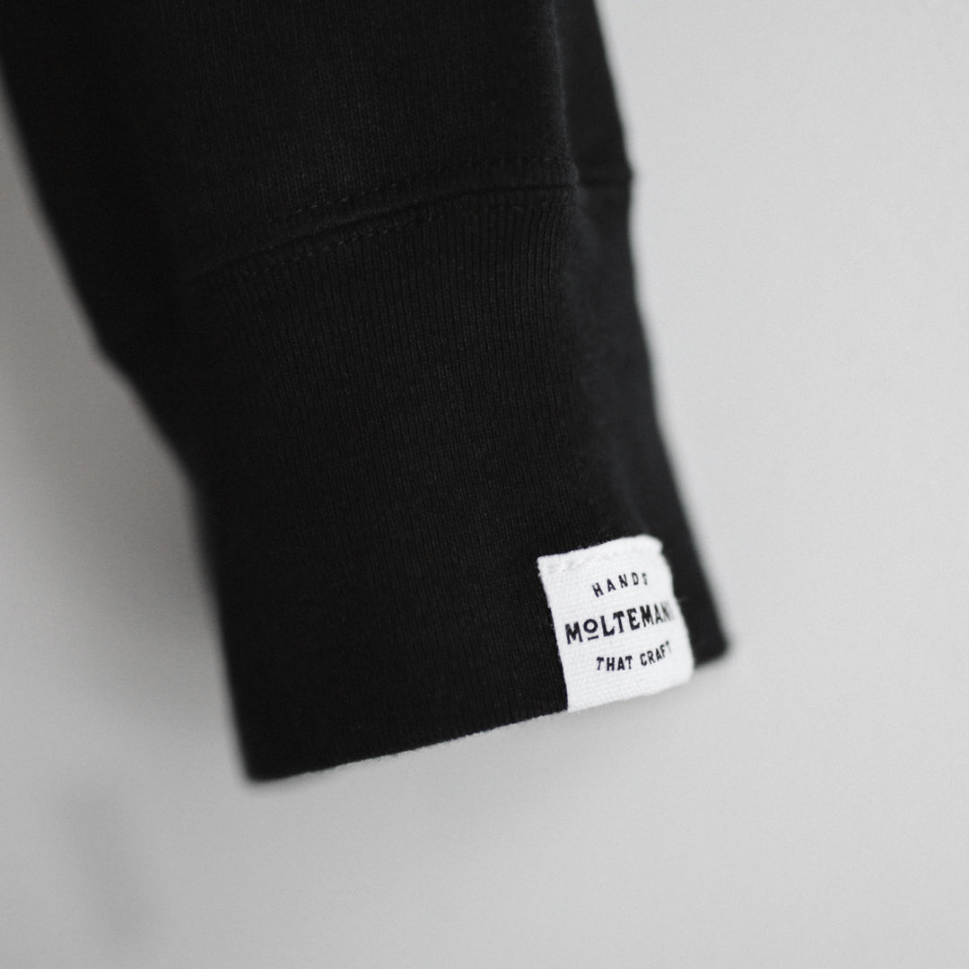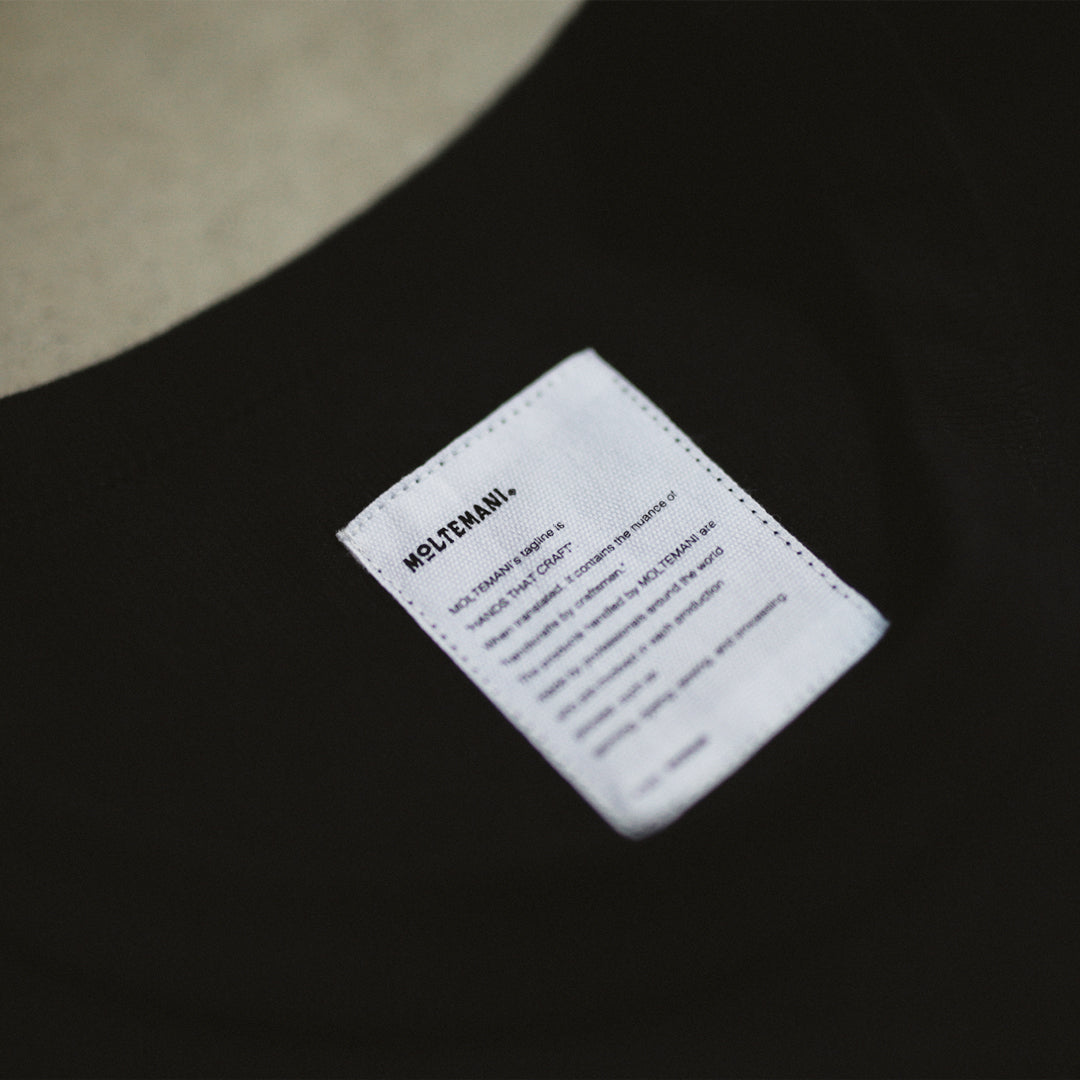 首まわりのネック部分には強度を高めるため、「バインダーネック仕様」を採用。リブ生地でボディ生地を挟み込む様に縫製することで、伸びやへたれる原因を軽減します。