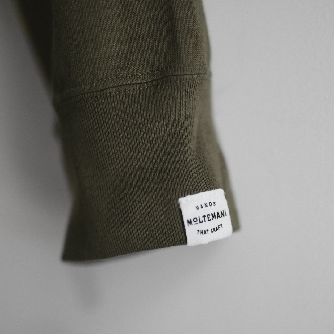 一本の糸から始まるMOLTEMANIのモノづくり。生地の舞台となったのは、日本有数のニット産地・和歌山県。「Wakayama Azuma knit Long Sleeve」の生地が生まれた場所です。生地の依頼をしたニッターさんでは、日本製の「アズマ編み機」という希少性の高い編み機が使われています。低速編み機(シンカー)と高速編み機の中間に位置するこの編み機は、絶妙な風合いの生地に仕上げるために誕生しました。「アズマ編み機」で編まれた生地は「アズマ裏毛」と言われ、膨らみと柔らかな風合いのある生地として知られています。