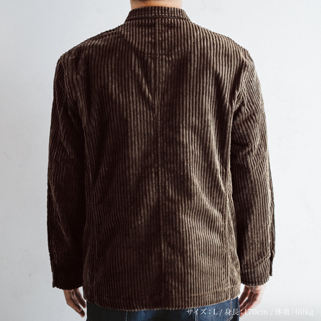 生地にはコットン100%を使用した、太畝の「3.5W コーデュロイ」を採用。一般的な10〜12Wとは一線を画す極太の畝で、その一本一本が際立つことでアイテムとしての確かな存在感を持たせています。