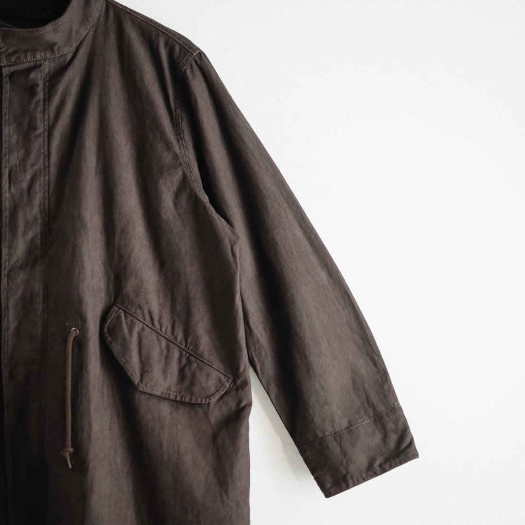 比翼仕立ての前立てと、すっきりと整えたシルエットにより、ミリタリー特有の無骨さを程よく中和。スタンドカラーとバランスの取れた着丈で、カジュアルにも上品な装いにも馴染んでくれます。