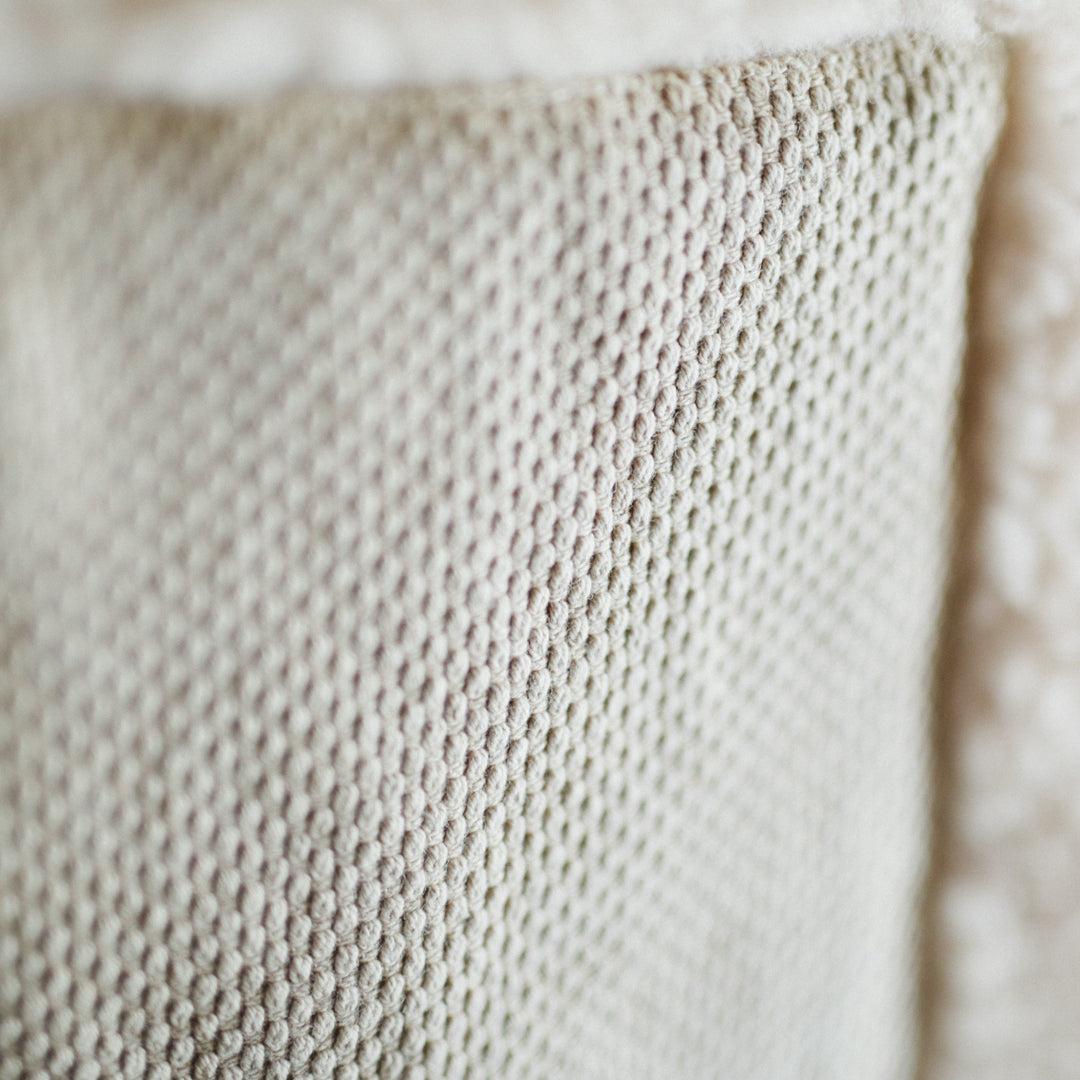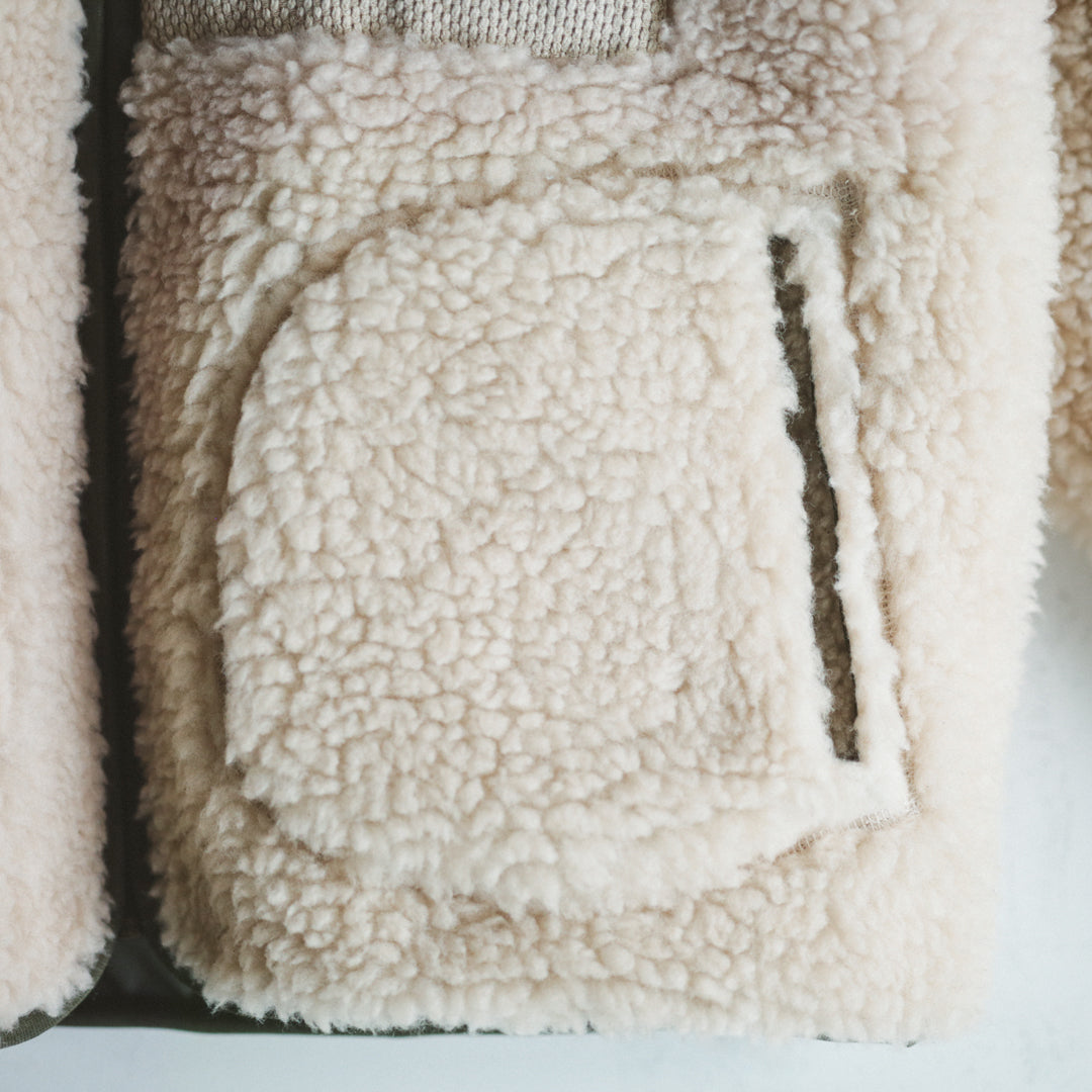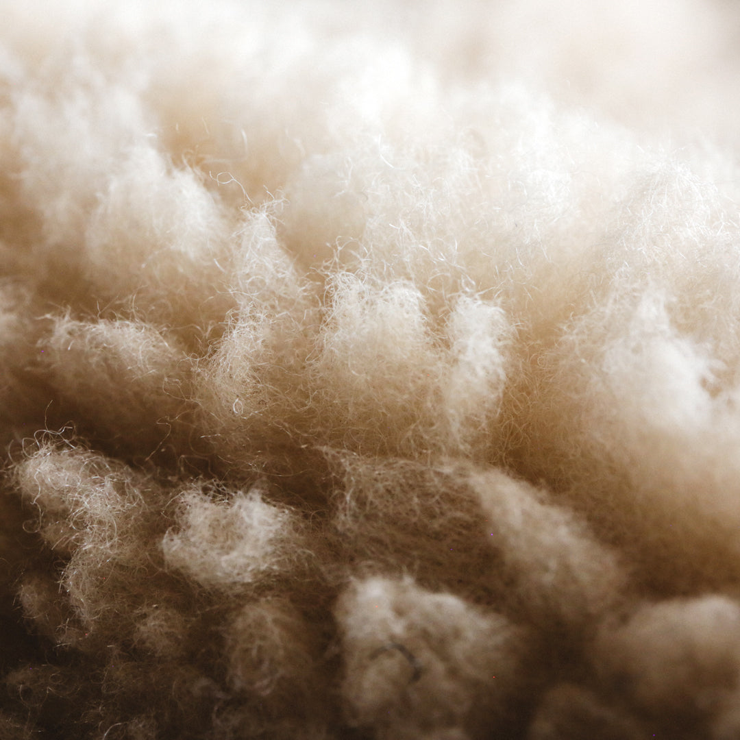 素材は、やわらかくも程よい弾力を持つボア生地を採用し、高密度に編み込まれた毛足が空気を多く含みます。