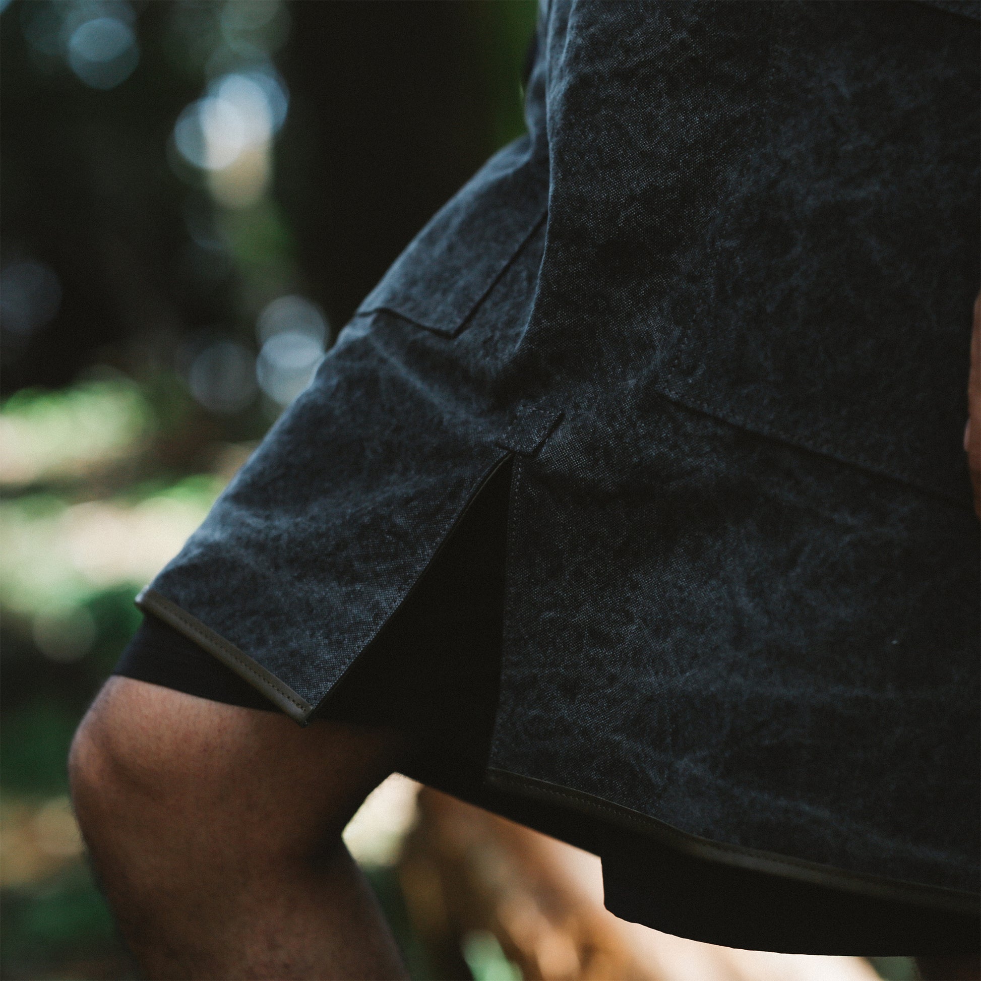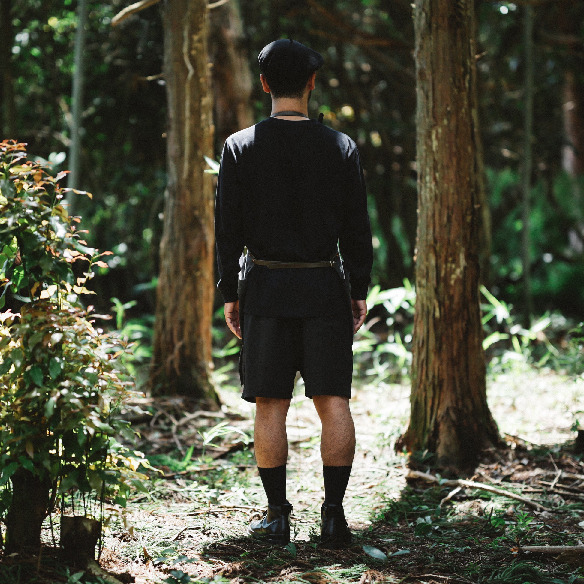 材質:生地:倉敷帆布(天然染め / 紀州備長炭) / ベルト:牛革 / パーツ:銅、真鍮