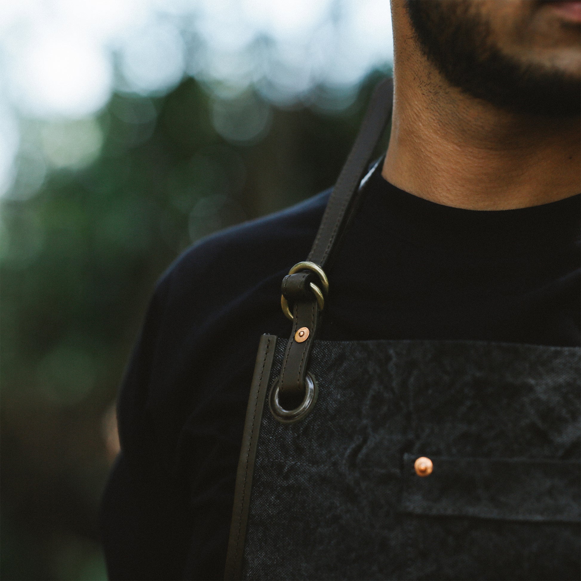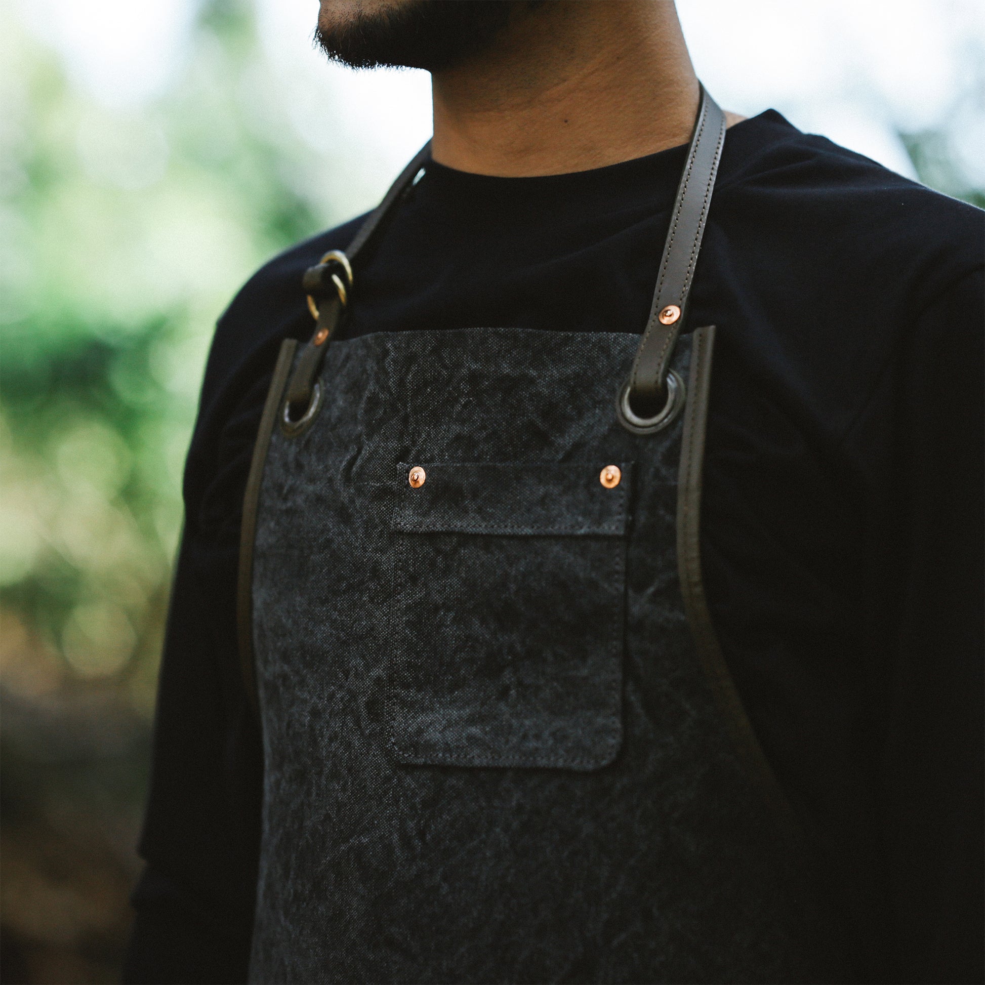 オリジナルエプロンのコンセプトとなっているのは、「経年変化」です。時間の経過とともにマテリアルのもつ風合いに深みが出て、使い初めよりも魅力が増していくものです。身近なものでは、本革がイメージしやすいかと思います。