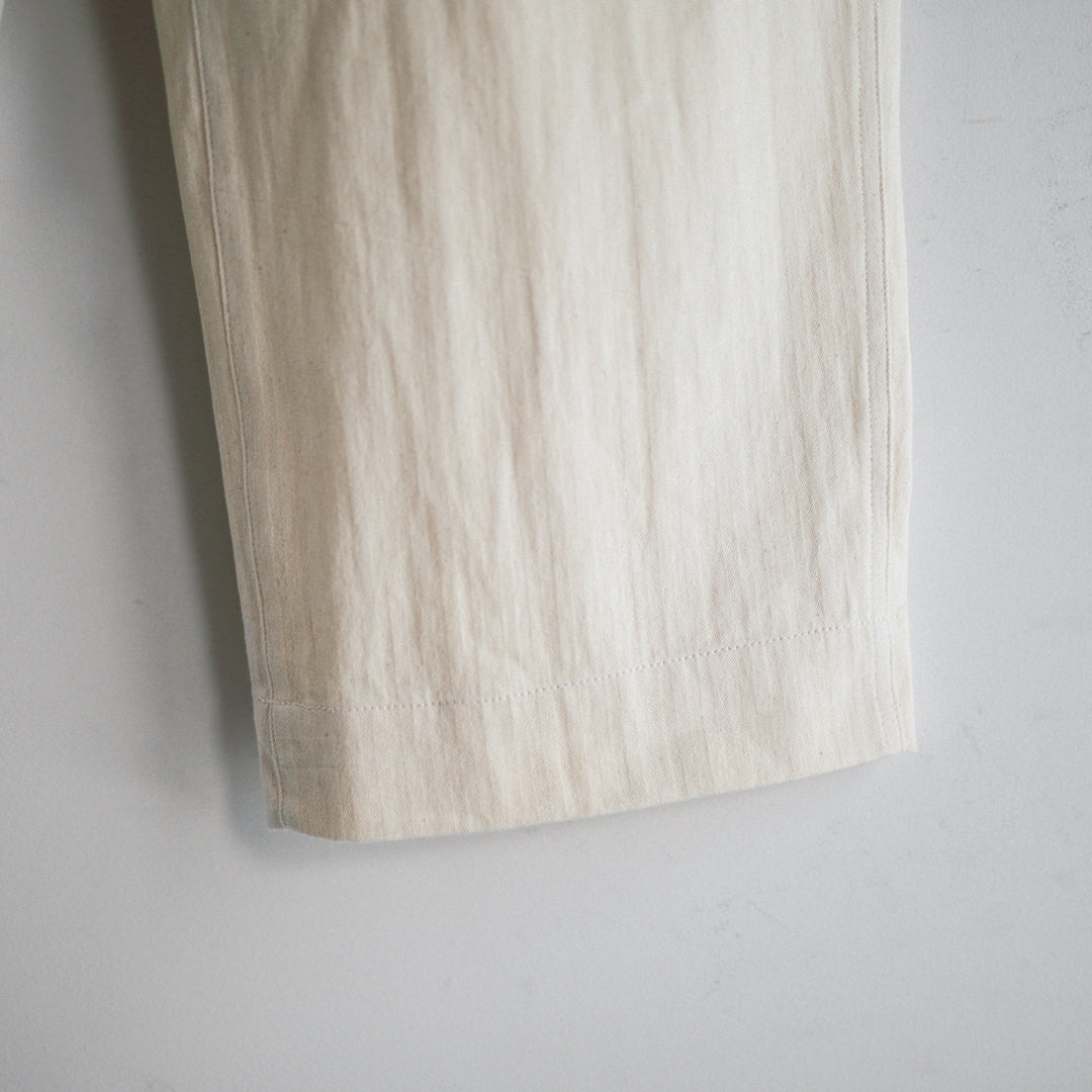 シルエットは、腰から裾にかけて落ちる、まっすぐ太めのストレートシルエット。ゆったりとした着心地がお好みの方におすすめです。春・秋の着用が、最適のシーズンです。