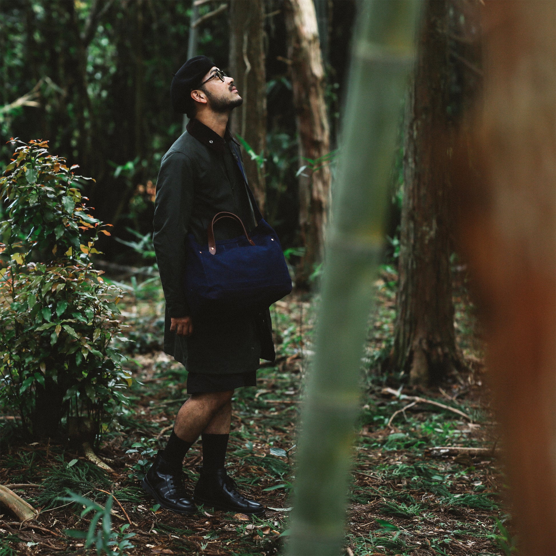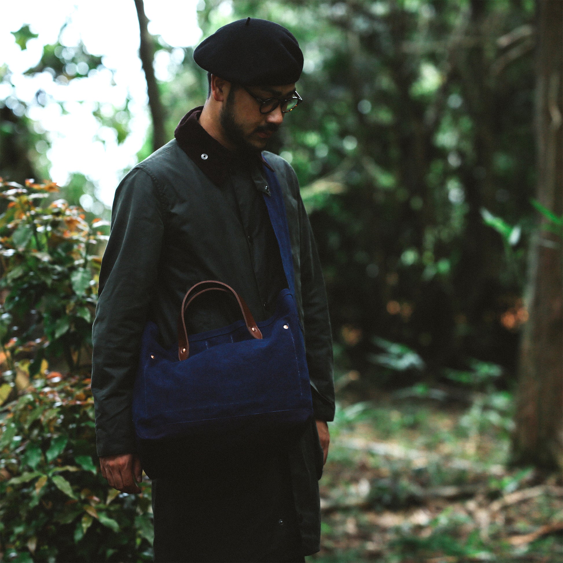 材質:生地:倉敷帆布(天然染め / 本藍) / ハンドル:牛革 / パーツ:銅
