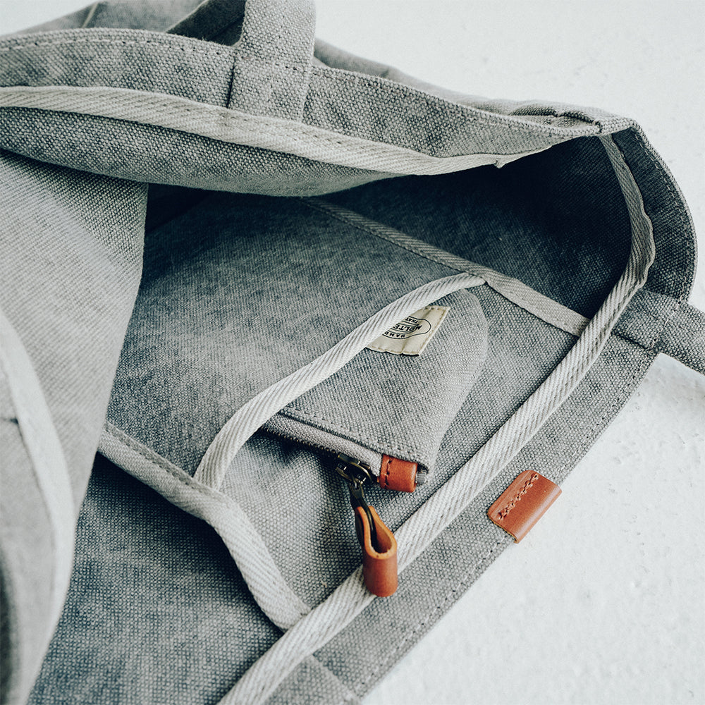 オリジナルの帆布作りは、岡山県・倉敷市で130年ほど続く生地屋さんの、一本の糸から始まります。帆布(はんぷ)は、無染の綿や麻の糸を撚り、平織りにした布のことです。いわゆるCANVAS(キャンバス)と呼ばれているのが、帆布です。特徴は、目が詰まっていて丈夫、水漏れしないのに通気性に優れていることで、古くから船の帆や馬具、カバンや作業用ジャケットなどにも用いられてきました。