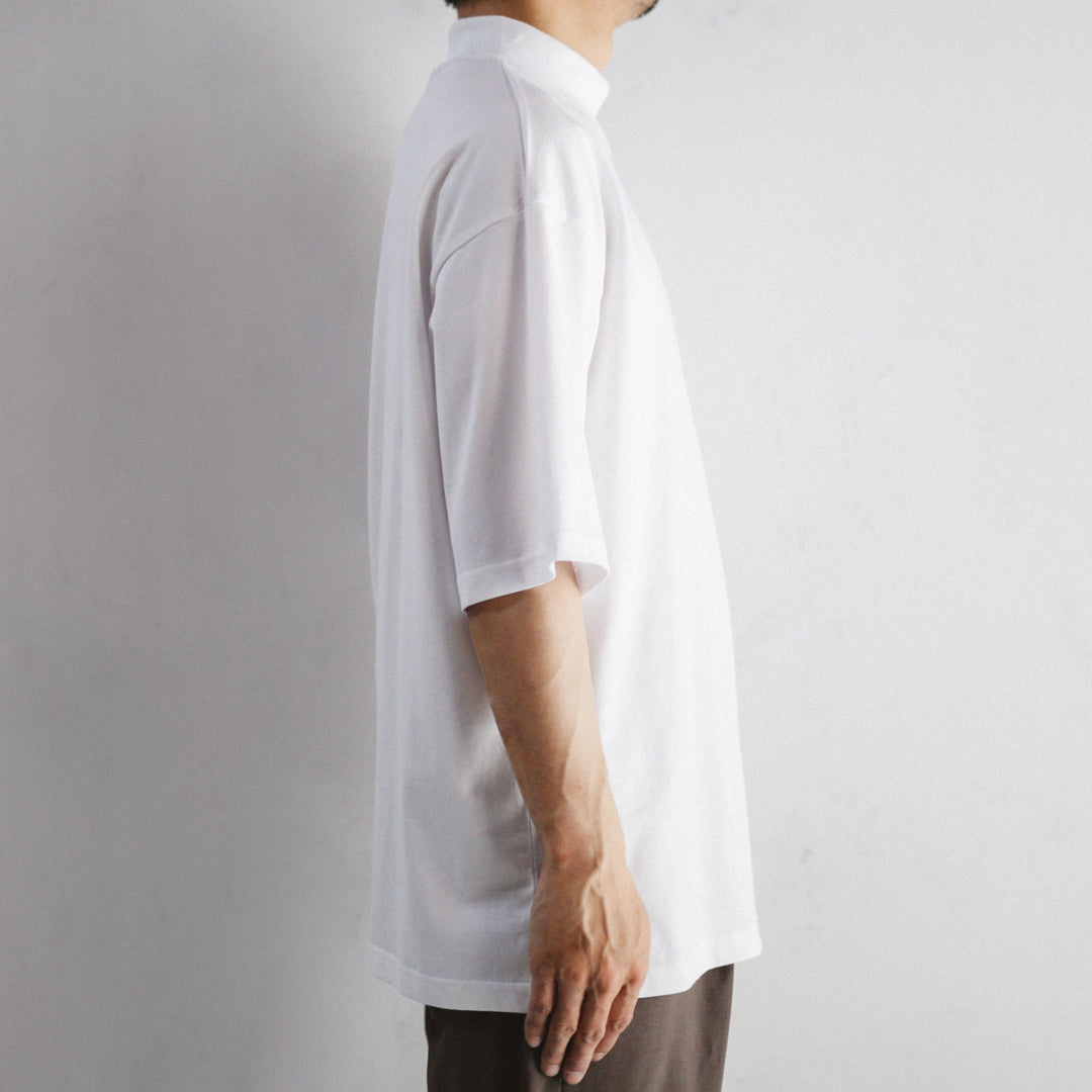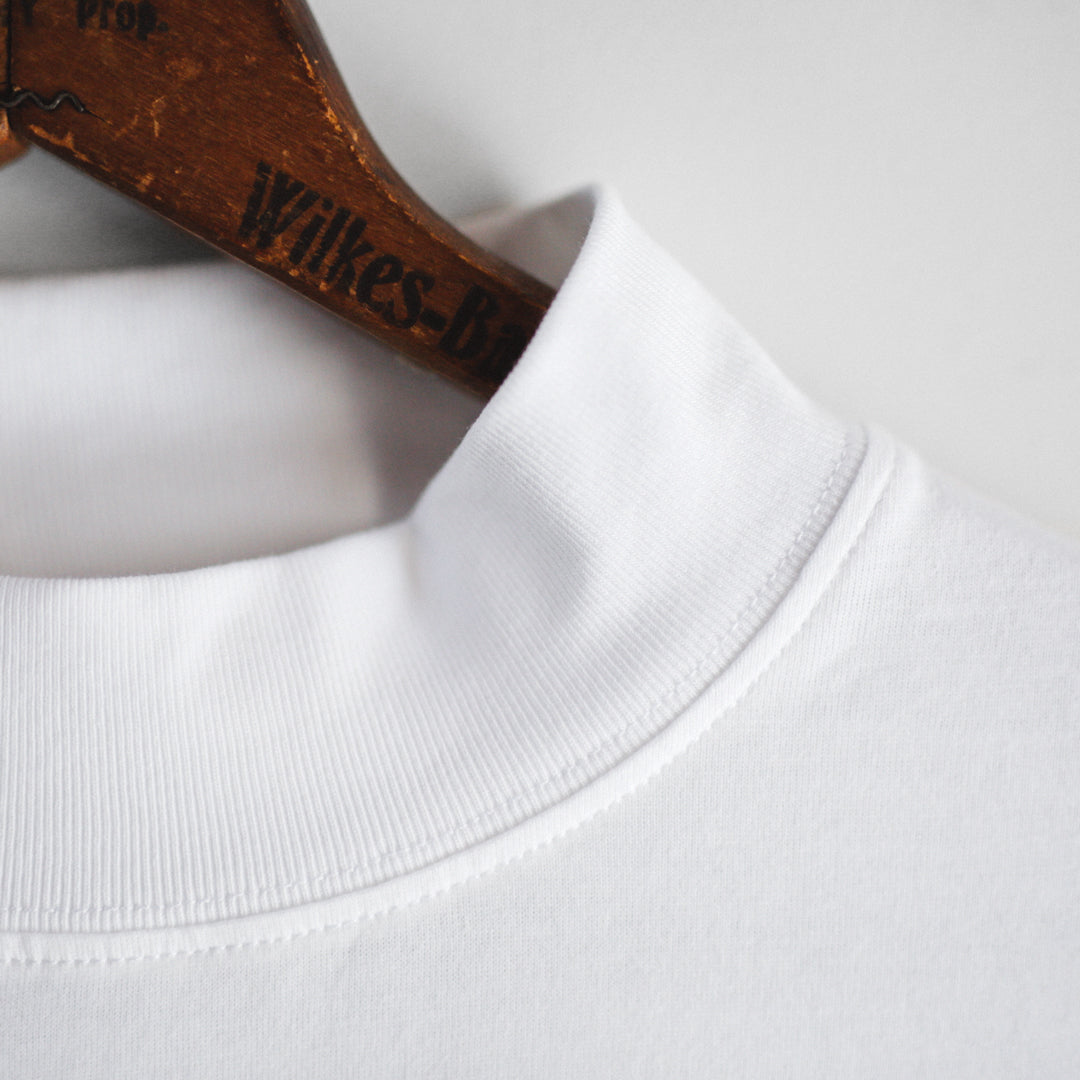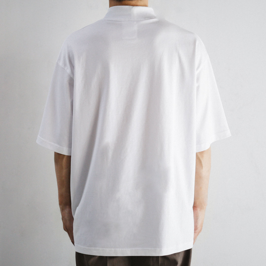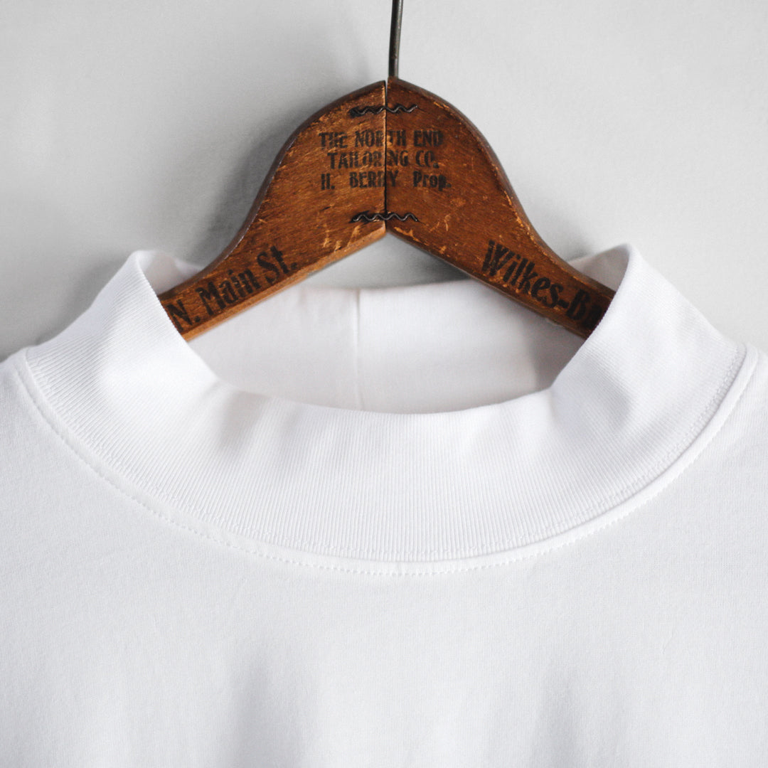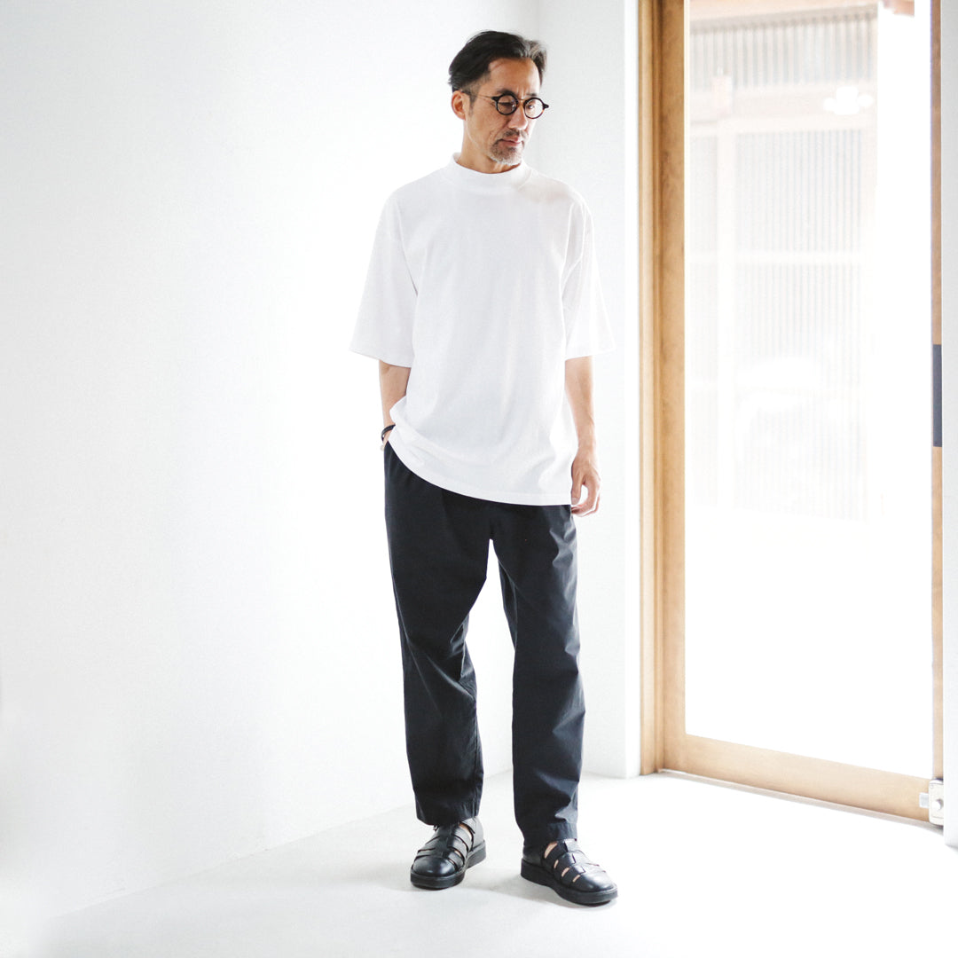 ゆとりあるシルエットと、品のあるデザインに仕上げた「7.7oz Over Size Mock Neck T-shirt」。