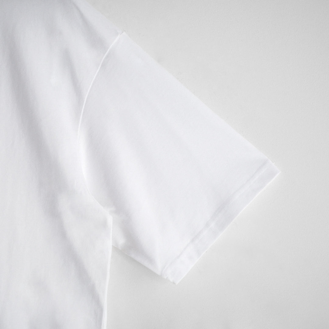 首元に程よい高さを持たせることで、Tシャツにあるカジュアルさを軽減し、落ち着いた雰囲気に。
