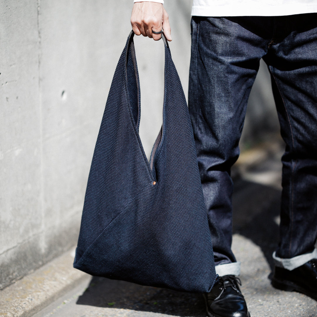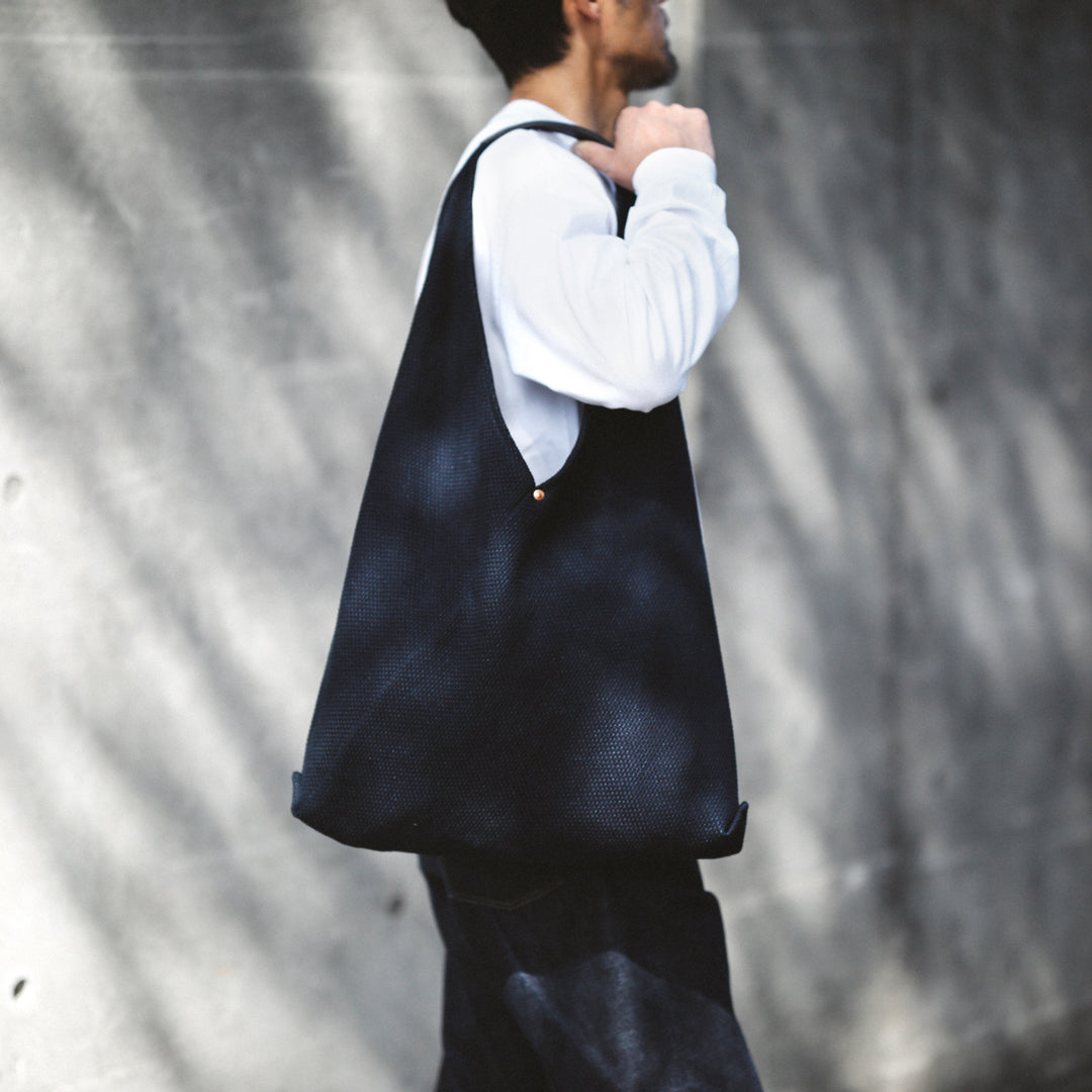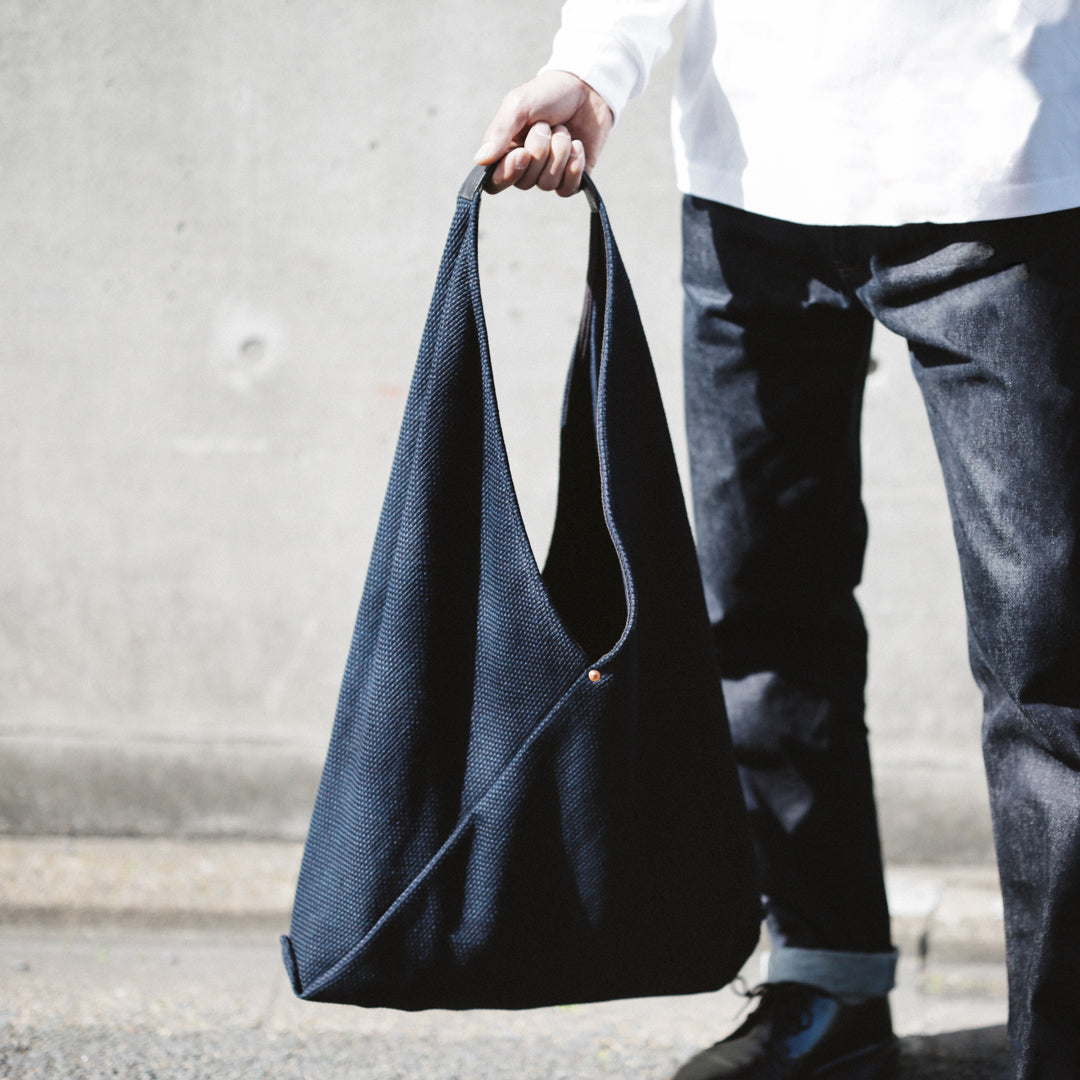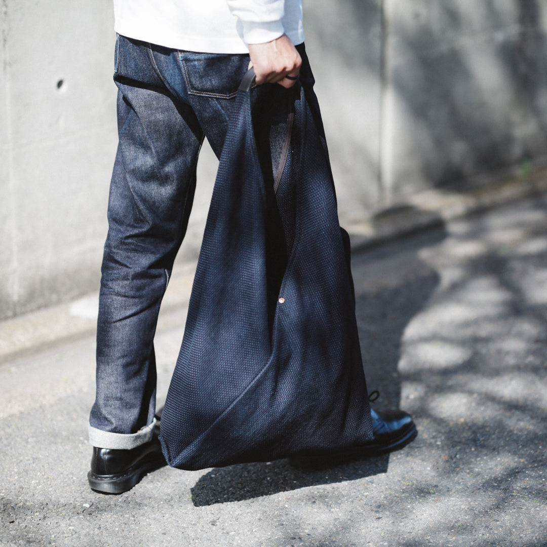 日本の暮らしに根ざした"あづま袋"と、実用性を備えた"刺子織り"。「14oz Heavy weight Sashiko Azuma Bag」は、その異なる背景を持つ日本の知恵を掛け合わせ、今のスタイルに落とし込んだアイテムです。