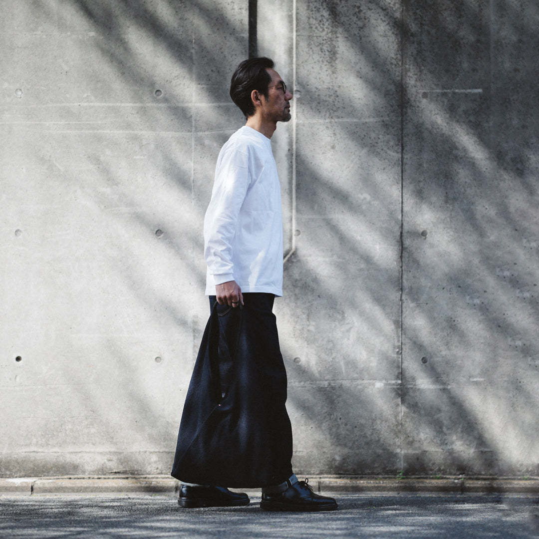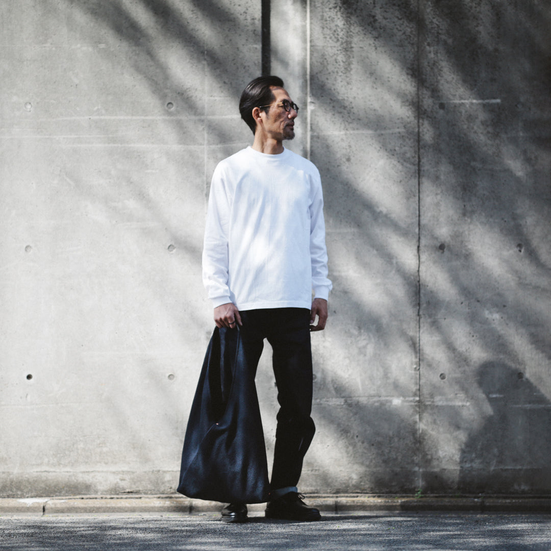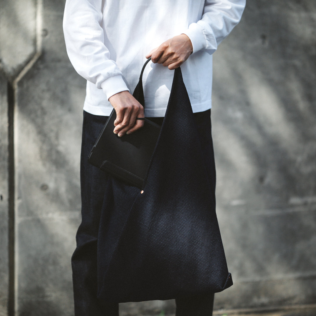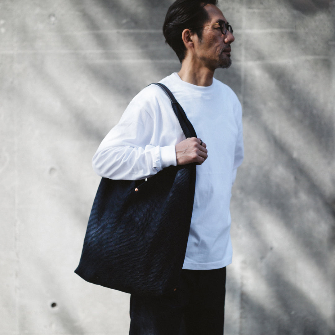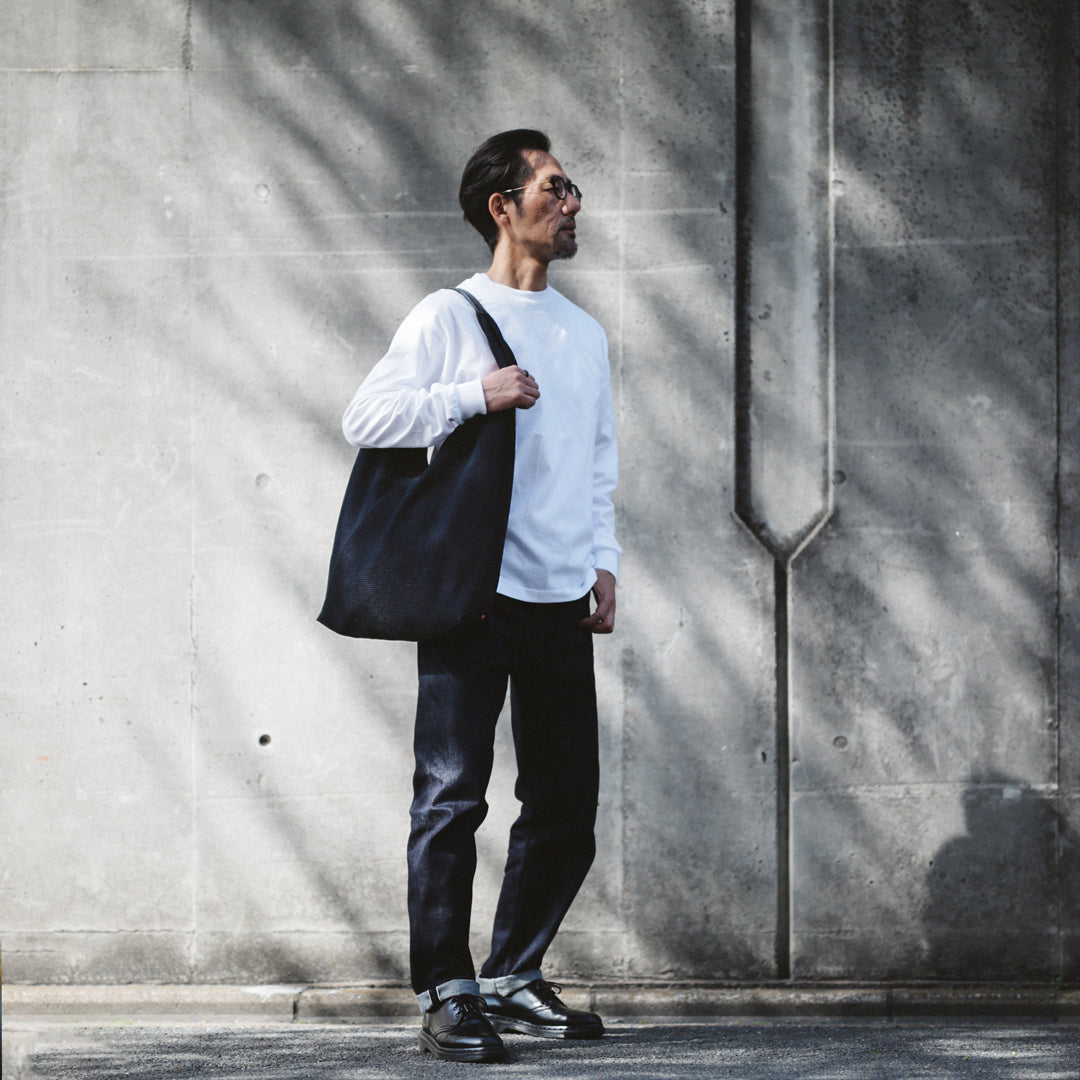 日本の暮らしに根ざした"あづま袋"と、実用性を備えた"刺子織り"。「14oz Heavy weight Sashiko Azuma Bag」は、その異なる背景を持つ日本の知恵を掛け合わせ、今のスタイルに落とし込んだアイテムです。