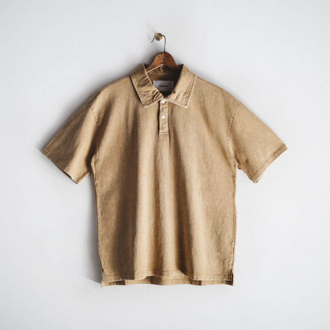 9.7オンスのしっかりとした厚みのコットン生地を使用した「9.7oz Washed Polo Shirt」。