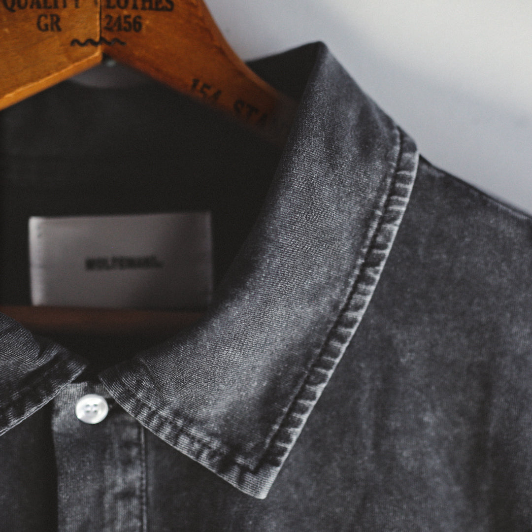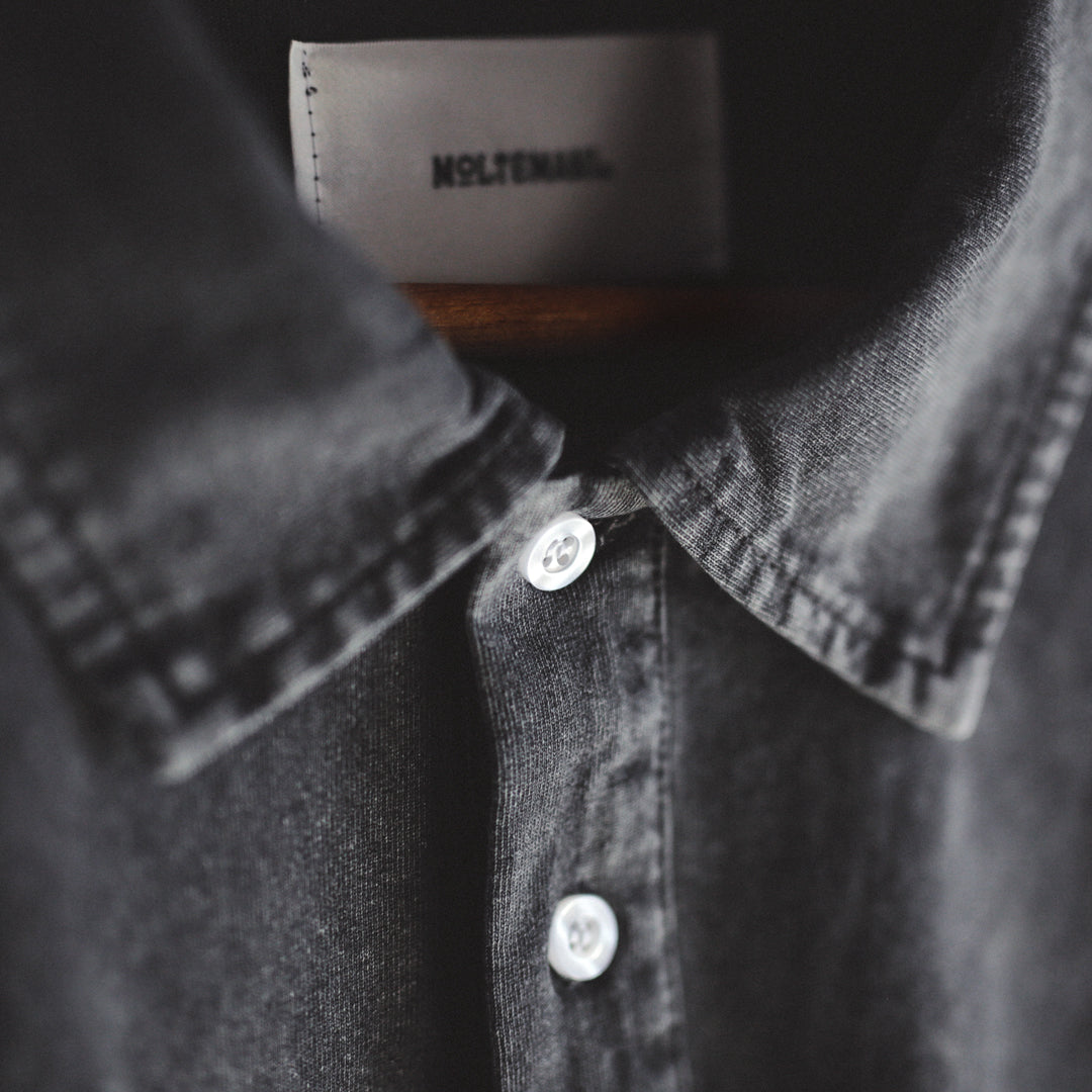 身幅・身丈ともに余裕を持たせたシルエットに、ドロップショルダーを採用。リラックス感がありながらも、衿付きの品の良さと絶妙なバランスが共存しています。